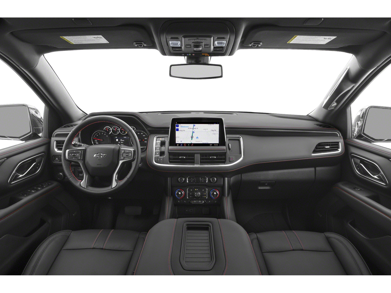 Black 2021 Chevrolet Tahoe RST 4WD 10-Speed Automatic with Overdrive EcoTec3 5.3L V8 4WD, Jet Black/Victory Red Leather.